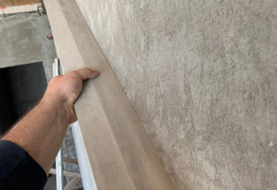 После окончания выравнивания раствора и его высыхания, удаляются штукатурные маяки и выполняется подрезание с помощью трапециевидного правила. После чего стены затираются до получения идеальной поверхности под финишную отделку.
